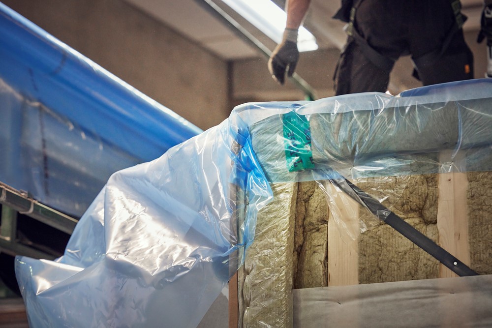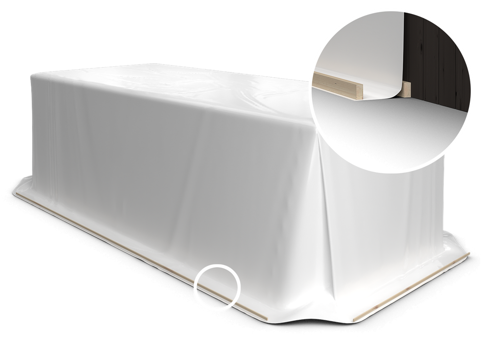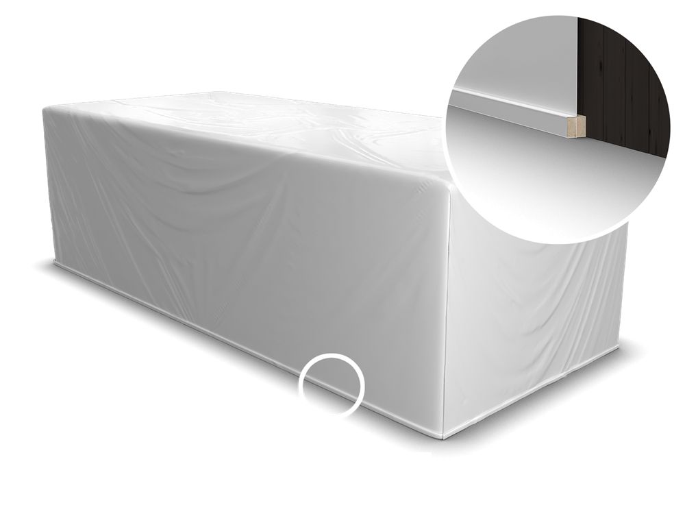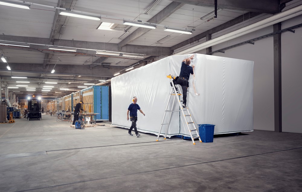 Hold husmodulet og bygningselementerne tørre og rene gennem hele processen – fra fabrik til byggeplads. Løsningen er baseret på en stærk og holdbar afdækningsfolie, som du også kan få dit firmas logo trykt på.