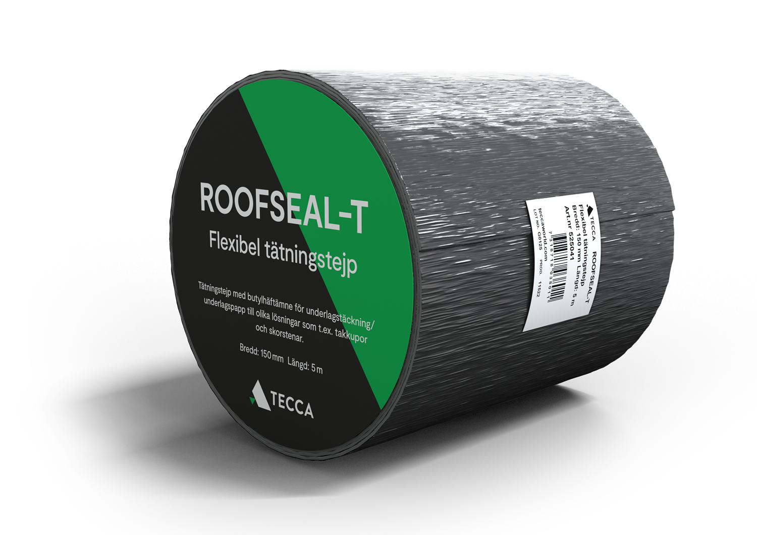 Diffusionstæt, enkelthæftende og UV-beskyttet aldringsbestandig sort tape.