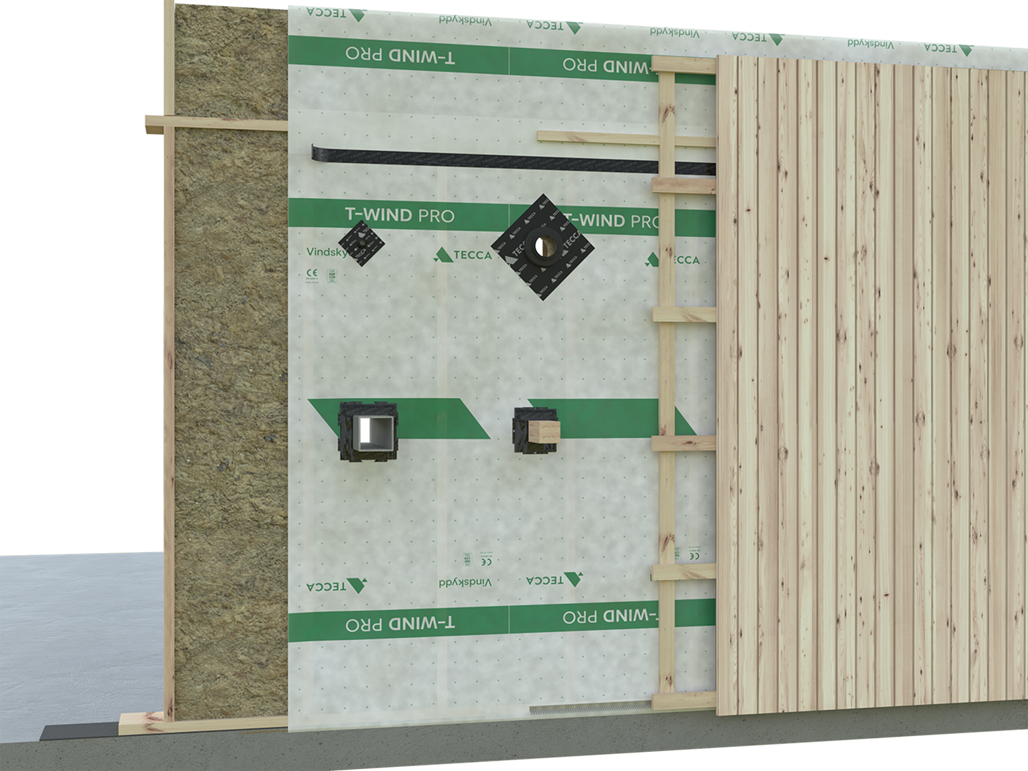 T-Wind er vindbeskyttelse, der udgør den ydre klimaskærm på ydersiden af isoleringen i ydervægskonstruktioner.