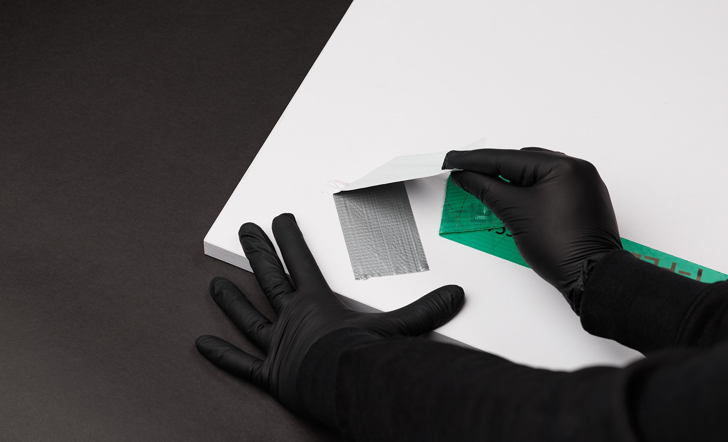 Vira silvertejpen runt handen, med den klibbiga sidan utåt. Dutta mot ytan som med en stämpeldyna. Det ser kanske märkligt ut. Men det fungerar. Och det är det viktiga.