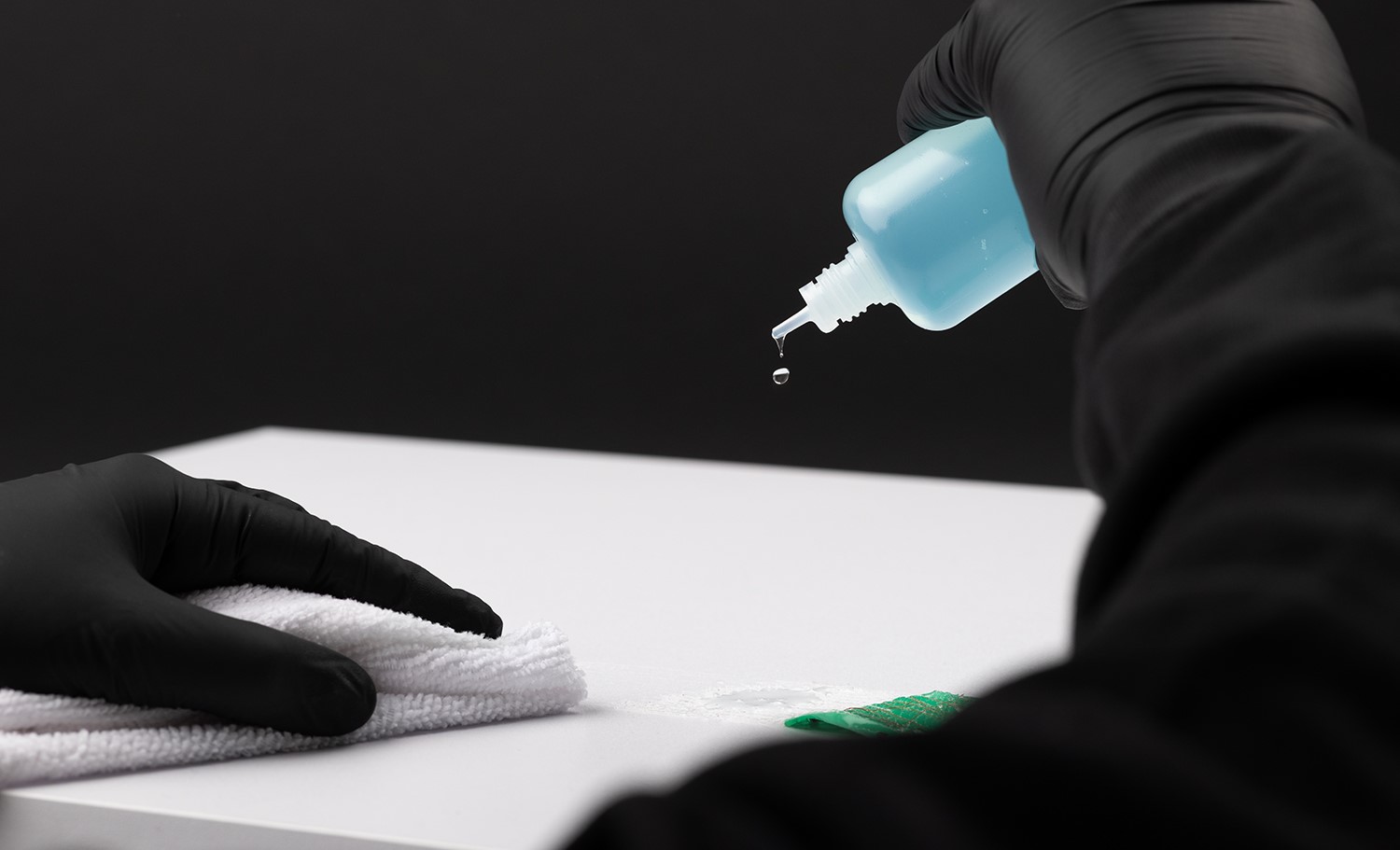 Etanolbaserade vätskor, som fönsterputs eller rengöringsmedel, fungerar också,