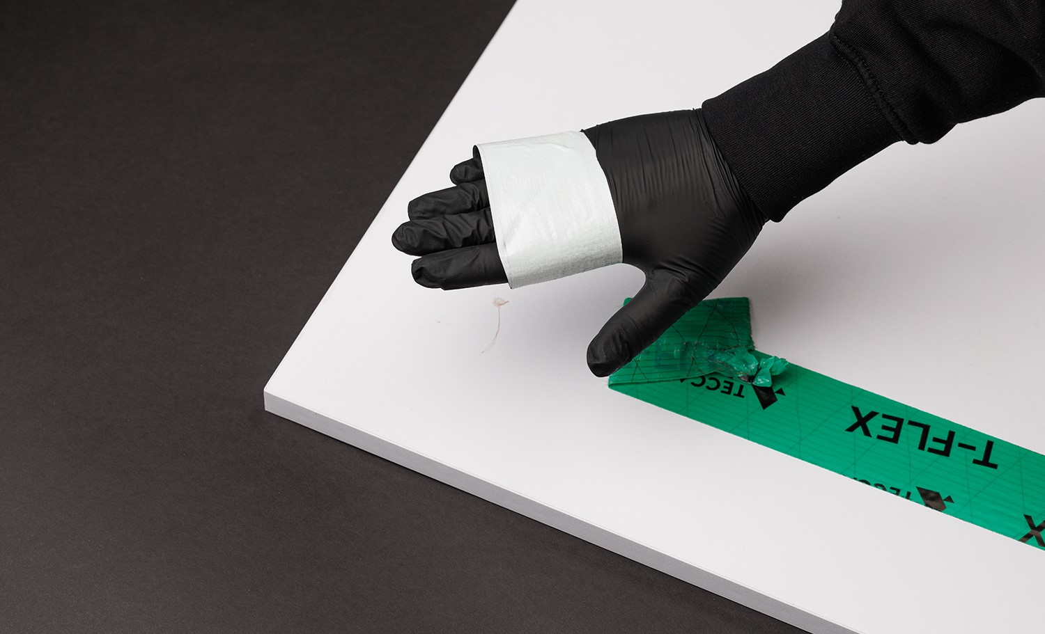 Det låter kanske som en olycka, men det är det inte alltid. Ofta handlar det om att något behöver göras om eller renoveras. Då märker man snabbt vad “sitter ordentligt” faktiskt innebär. Det är ett bevis på att T-Flex gör exakt det den är utvecklad för. First-Tejp-Kit är första hjälpen i de lägena. Inte för att något gått fel, utan för att den sitter precis som den ska. Okej. Då gör vi det här på rätt sätt. Följ stegen nedan.