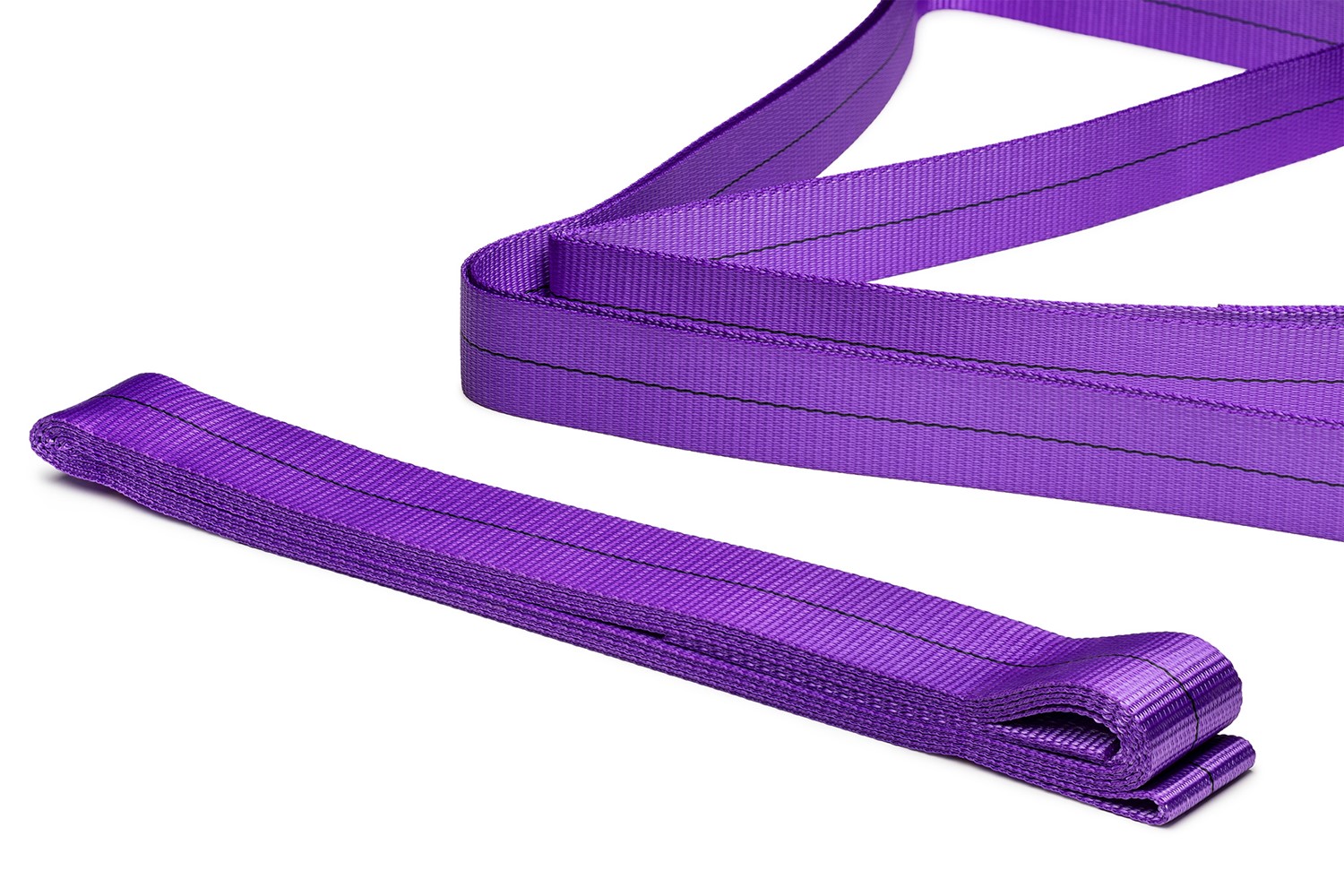 Den lila varianten har dubbel kapacitet jämfört med vanliga bandslingen och består av flätat polyesterband som sytts ihop till en ändlös slinga. Bandslingen ger ett säkrare resultat då man inte behöver ta hänsyn till en knut i ett annat lyftredskap.