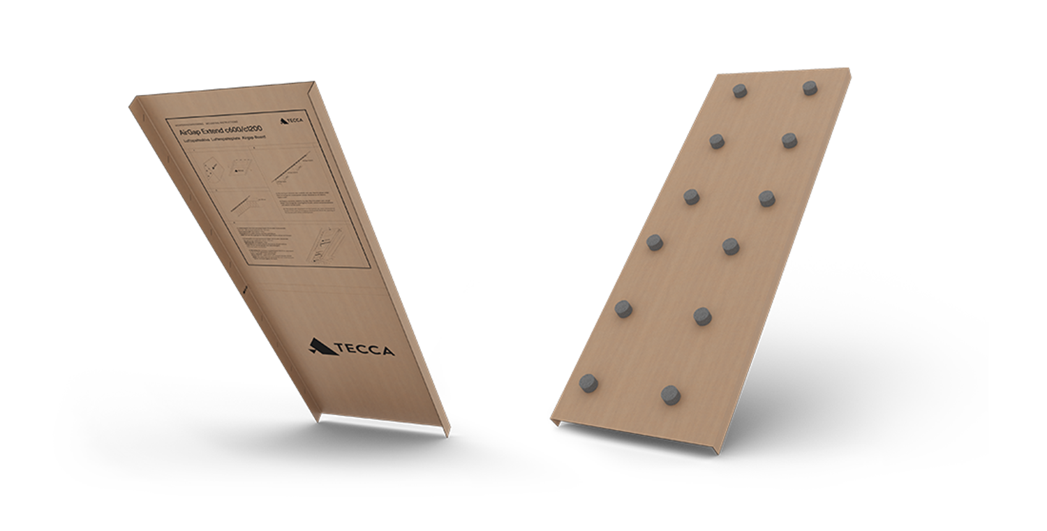 AirGap Extend luftspalteplade er et diffusionsåbent produkt, fremstillet af 90% biobaseret råmateriale. Produktet er udstyret med afstandsstykker, der sikrer ventilationsspalten ved paralleltag, alternativt koldloft. Meget tidsbesparende, takket være nem og hurtig montering. For lavhældende tage, mindre end 14° taghældning anbefales pladen med 50 mm afstand. For tage med taghældning 14° eller mere anbefales pladen med 30 mm afstand. Indgår i systemløsning med vores vindafleder AirGap Eaves.
